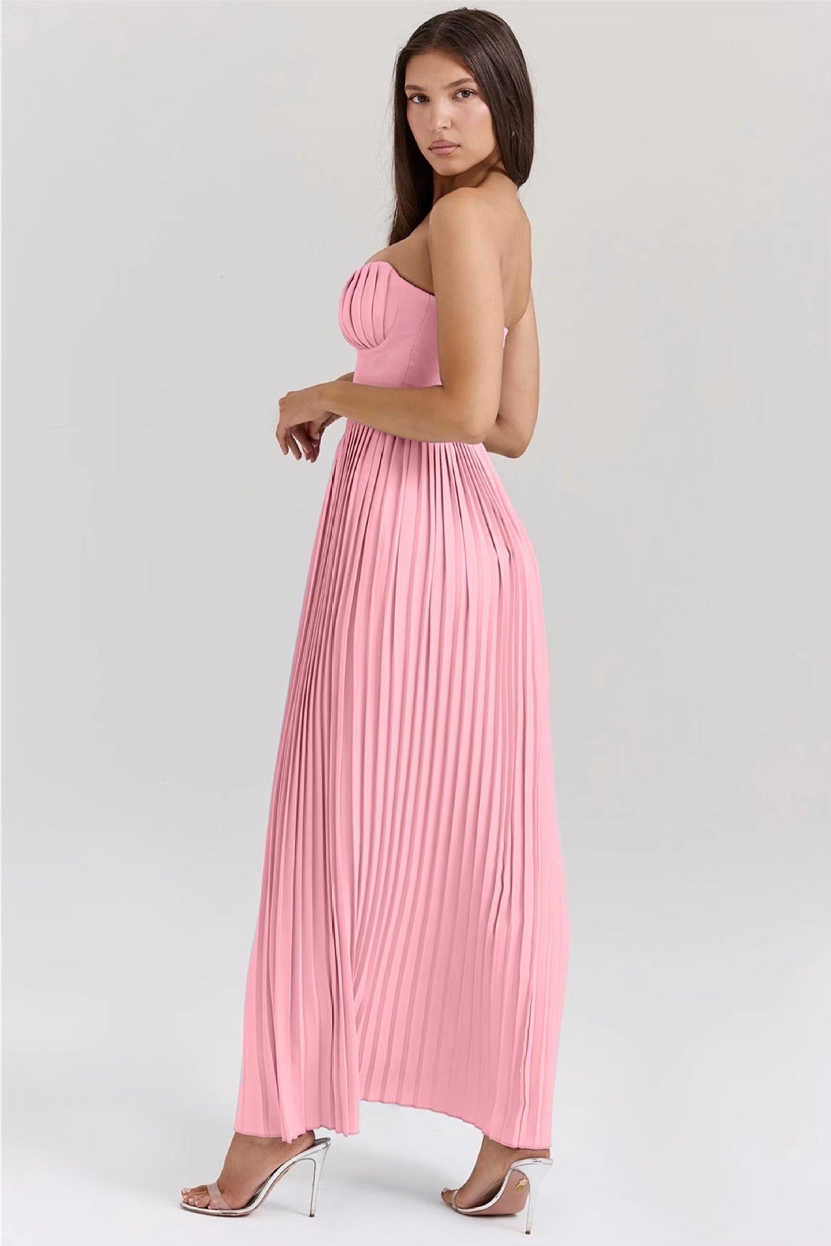 Poznaj Sofia – zjawiskową sukienkę maxi, która łączy w sobie elegancję i kobiecy urok. Jej gorsetowa góra pięknie podkreśla dekolt, a plisowany dół dodaje lekkości i klasy. Idealna na sesje zdjęciowe, przyjęcia, randki – wszędzie tam, gdzie chcesz wyglądać oszałamiająco.